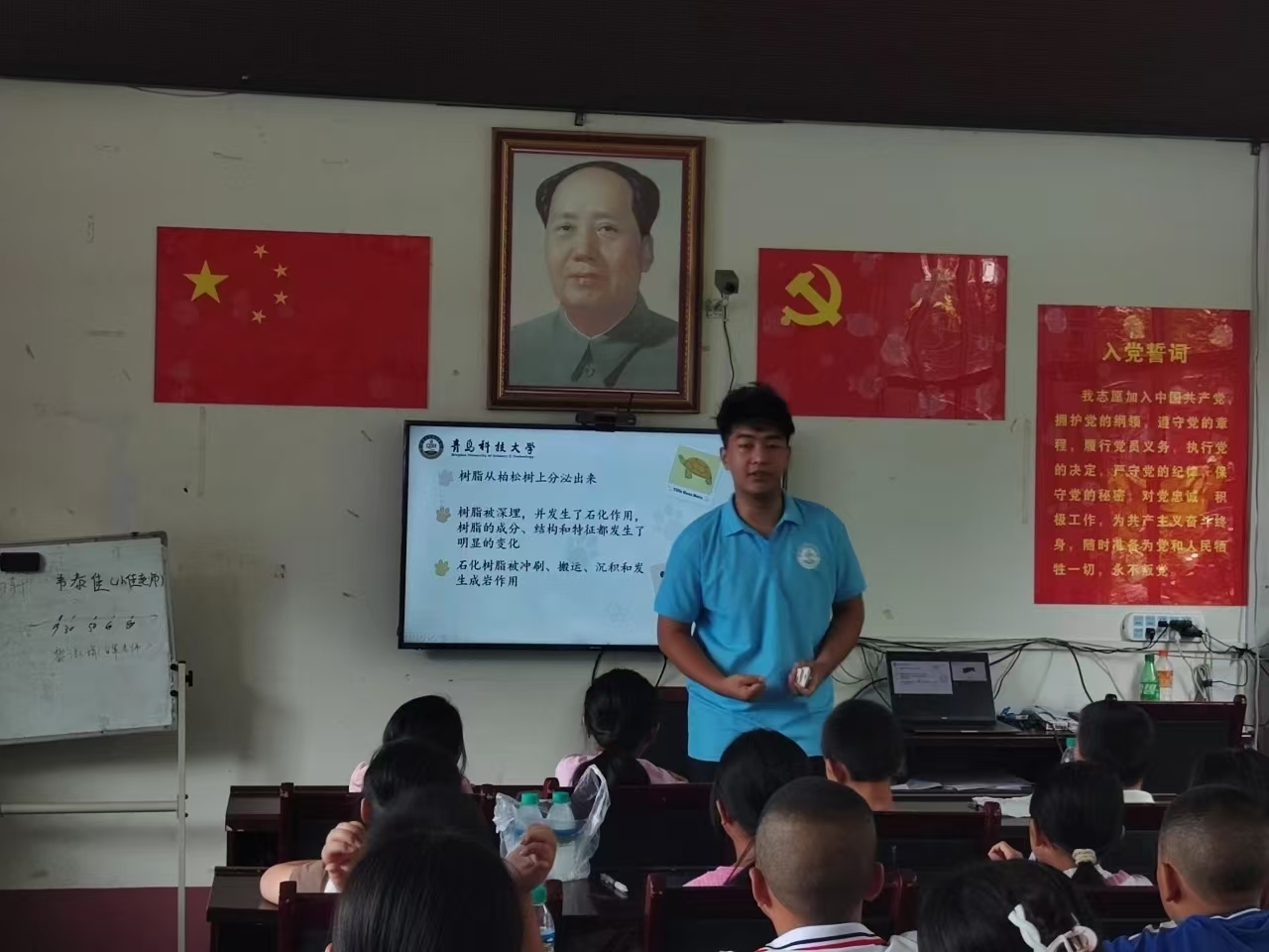 为提高同学们探索大自然的积极性,增强同学们的动手能力,7月27日至28日,海洋公司实践团成员赴洗车河镇开展主题宣讲与“琥珀展示小课堂”活动,通过多媒体课件、实物演示和互动问答等方式,普及了琥珀的形成原理、鉴别方法以及在科研、艺术领域的应用价值。