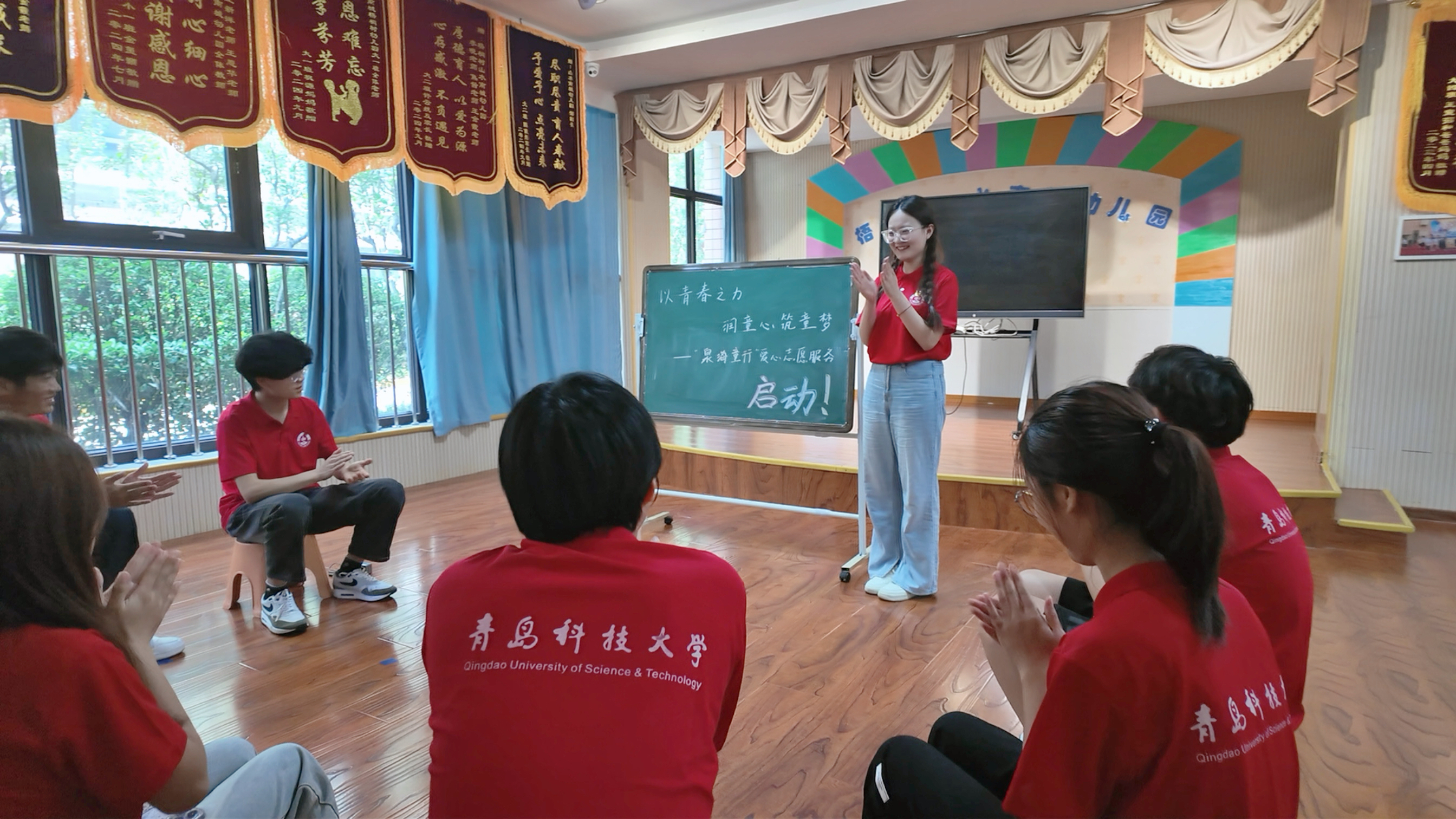 7月17日,谈球吧网页版登录入口“泉海童行”爱心志愿服务团依计划走进山东省济南市章丘区山水南城梧桐树幼儿园,开启正式授课前为期一天的观摩交流活动。
