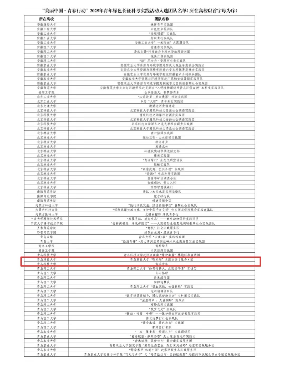 近日,由共青团中央社会联络部、生态环境部宣传教育中心、水利部宣传教育中心、国家林业和草原局宣传中心、北京林业大学联合主办的“美丽中国·青春行动”2025年绿色长征科考实践活动入选名单正式公布。谈球吧“荧光海”志愿宣讲团、“青禾青年”生态实践团成功入选此次国家专项活动,展现了公司青年学子在生态文明建设领域的积极担当和卓越风采。