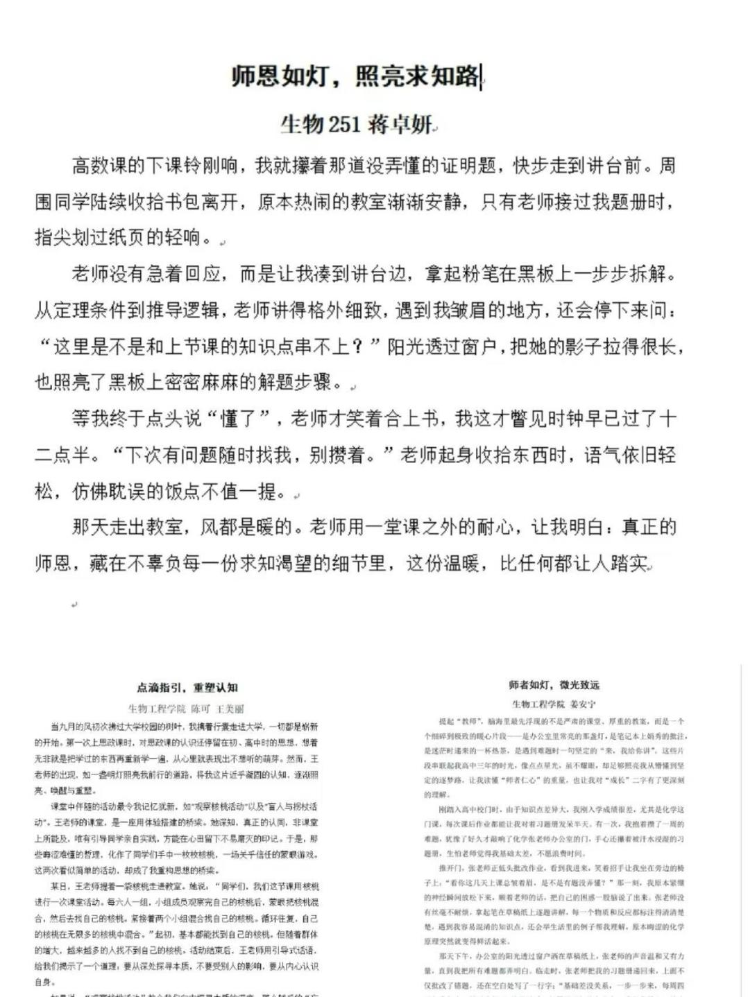 为深化师生情感联结,以文字为载体定格师生相处的温情瞬间,谈球吧组织开展线上短文征集活动,在本次活动中,同学通过撰写短文的形式,分享与老师相处的暖心故事,诉说埋藏心底的感恩与敬意,展现师生间的温情点滴,让老师们读懂了员工未曾言说的心意与深情。