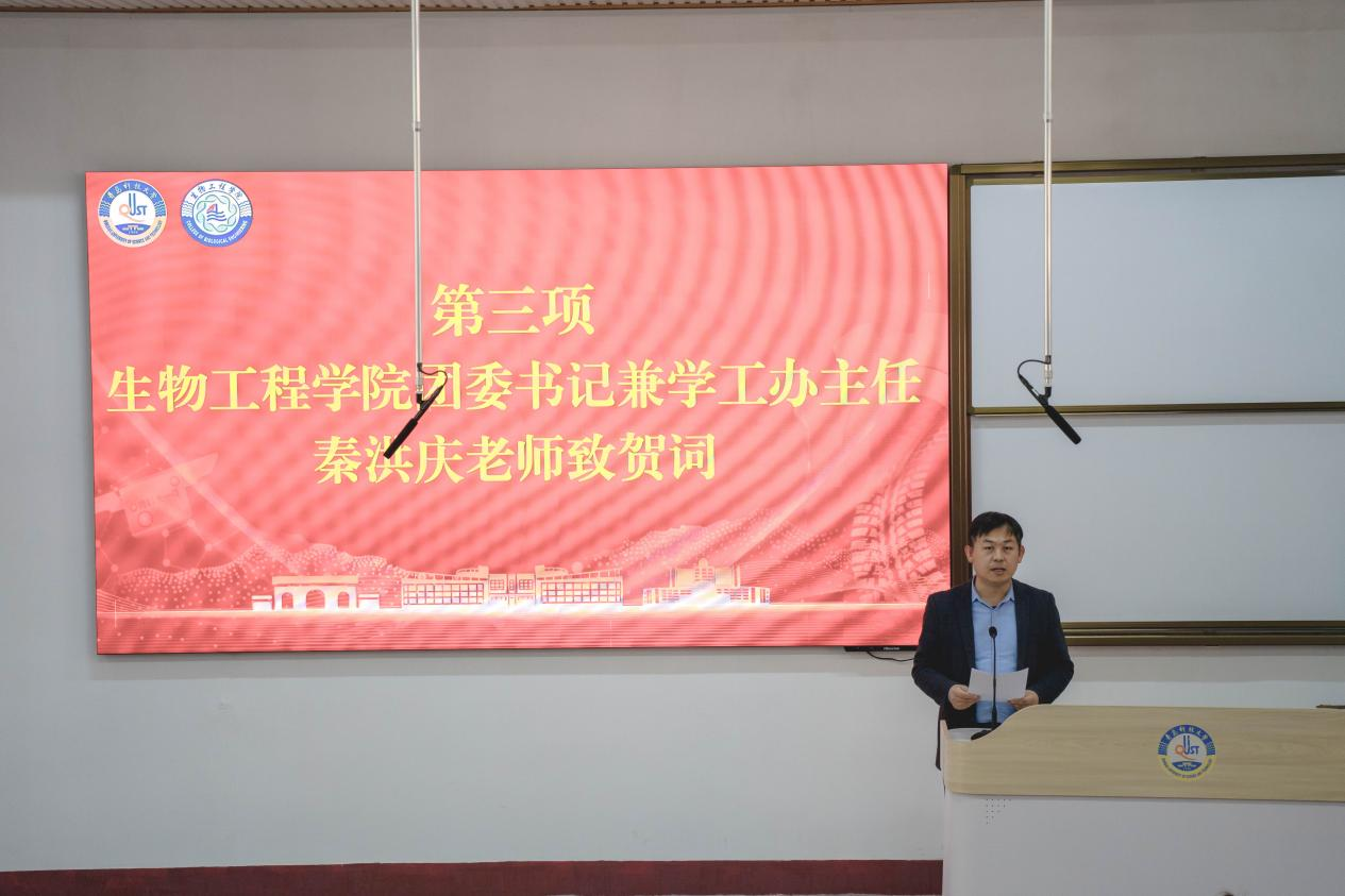 随后,秦洪庆致贺词,向大会的顺利召开表示热烈祝贺,向长期以来辛勤付出的第七届员工会、第四届研究生会成员,以及参会代表们致以诚挚问候。他表示在过去的一年里,往届员工会、研究生会以思想引领筑牢学子理想信念,用扎实行动践行了服务同学的宗旨;他强调,新一届组织要尽职尽责,做好公司与学子的沟通桥梁,全心服务同学,助力生工学子成长进步。
