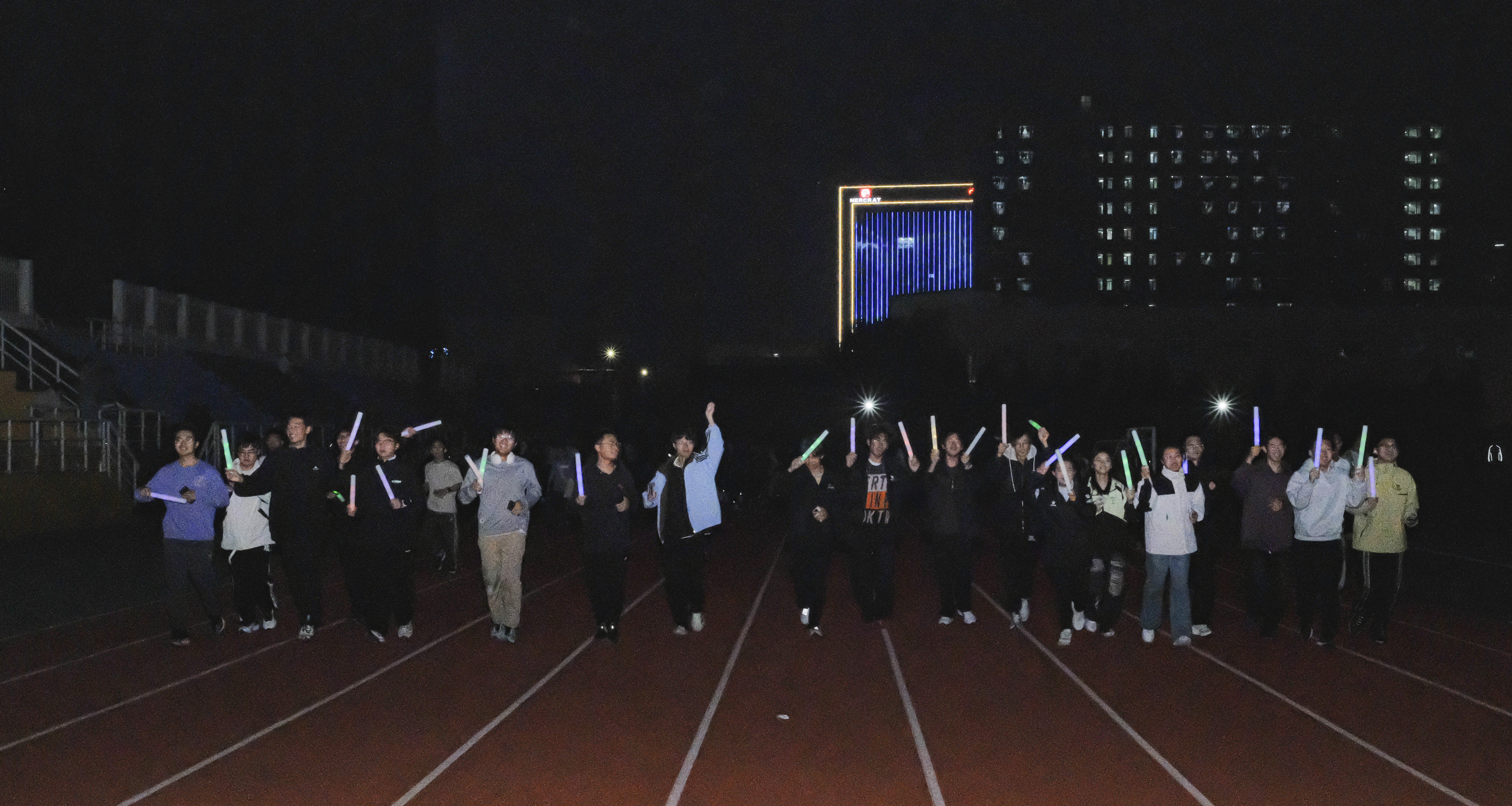 夜色之下,参与者们手持荧光棒,将整个跑道装点成一片流光溢彩的欢乐海洋。活动伊始,工作人员细致讲解了安全注意事项。在领跑员的带领下,同学们迈开步伐,用奔跑和汗水点亮了夜晚的校园。活动现场气氛热烈,充分展现了生工学子朝气蓬勃、昂扬奋进的精神风貌。