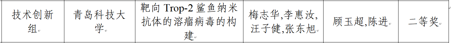 由李勇老师指导的《金标锐检--脓毒症急速诊断系统》,由顾玉超、陈进老师指导的《靶向Trop-2鲨鱼纳米抗体的溶瘤病毒的构建》,由王晓琨老师指导的《基于TRIZ理论的高活性纳米酶试纸用于肝癌早期诊断》荣获二等奖。