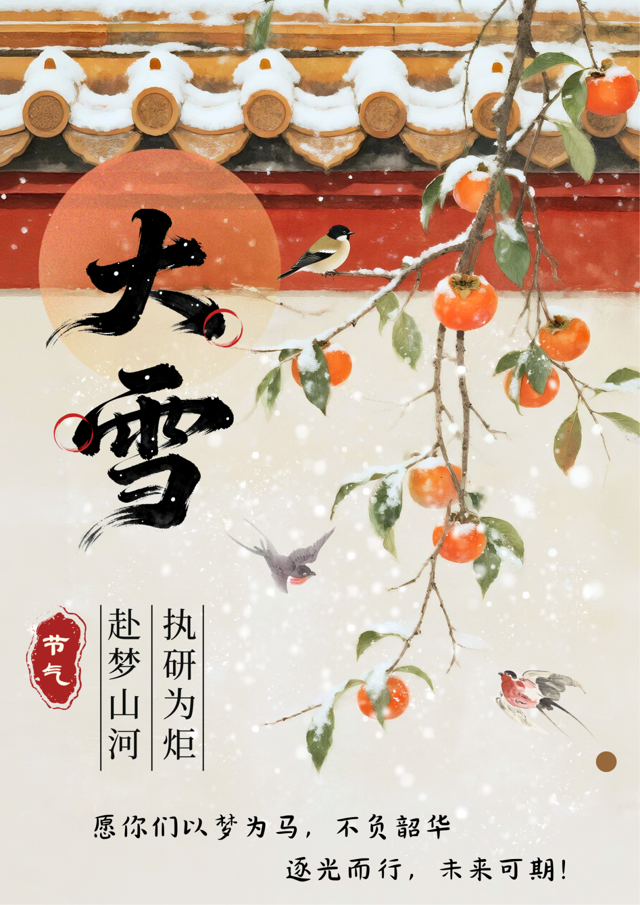 今日大雪无雪,寒意流转间,自习室的窗棂已被你们伏案的身影焐得温热;夜色浸浓走廊,笔尖划过书页的沙沙声盖过风声,诉说着对梦想的执着。此刻的你们,正以心为砚、以汗为墨、以时光为笺,在考研长卷上勾勒心中山海。作为你们的老师,见过你们清晨揣热粥奔赴自习室的匆忙,哈气搓手仍紧攥笔记;见过你们深夜揉着酸胀的眼睛不肯合书的坚持;见过你们解出难题时的光亮,也见过你们陷入瓶颈时的默默擦拭——这份冲刺时光里的坚守,正是青春最动人的模样。