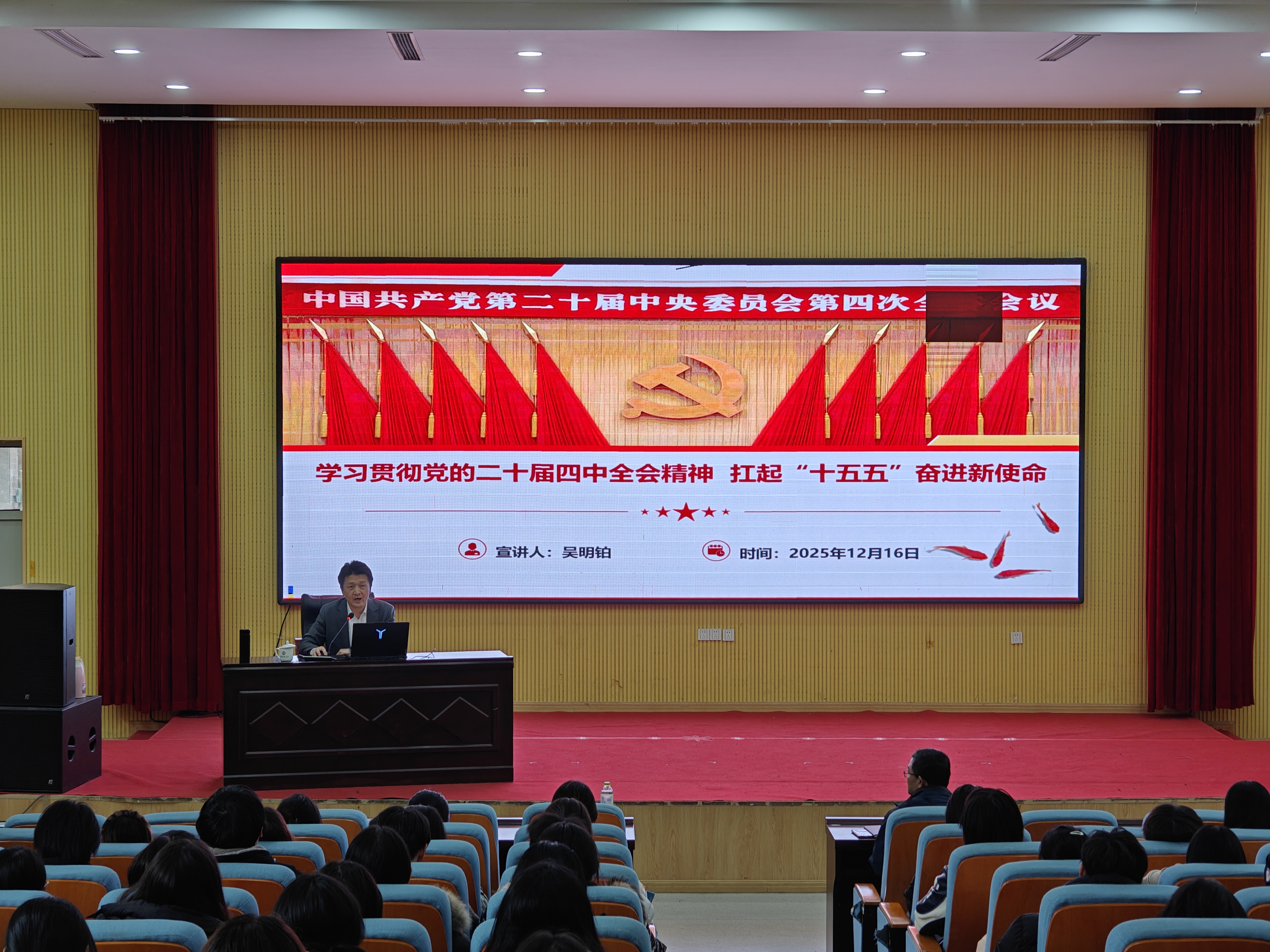 吴明铂以《学习贯彻党的二十届四中全会精神,扛起“十五五”奋进新使命》为主题,通过生动的案例、翔实的数据系统回顾了“十四五”时期我国经济社会发展取得的历史性成就,并对党的二十届四中全会的重要意义、《中共中央关于制定国民经济和社会发展第十五个五年规划的建议》擘画的未来五年发展蓝图、目标、原则与具体部署进行了详细的讲授。结合公司“十四五”发展成就及“十五五”规划,吴明铂重点总结了公司在团队建设、人才培养、科技创新等领域实现的突破性进展,详细介绍了公司“十五五”擘画的“1个总体规划+9个专项规划+2个特色规划+N个公司、部门、校区规划”的未来规划蓝图。他勉励员工要把握发展机遇,充分发挥生物、化学等基础学科的支撑与交叉融合优势,积极融入公司整体发展战略,培育创新发展新动能,在服务国家战略和公司发展中展现新担当、实现新作为。
