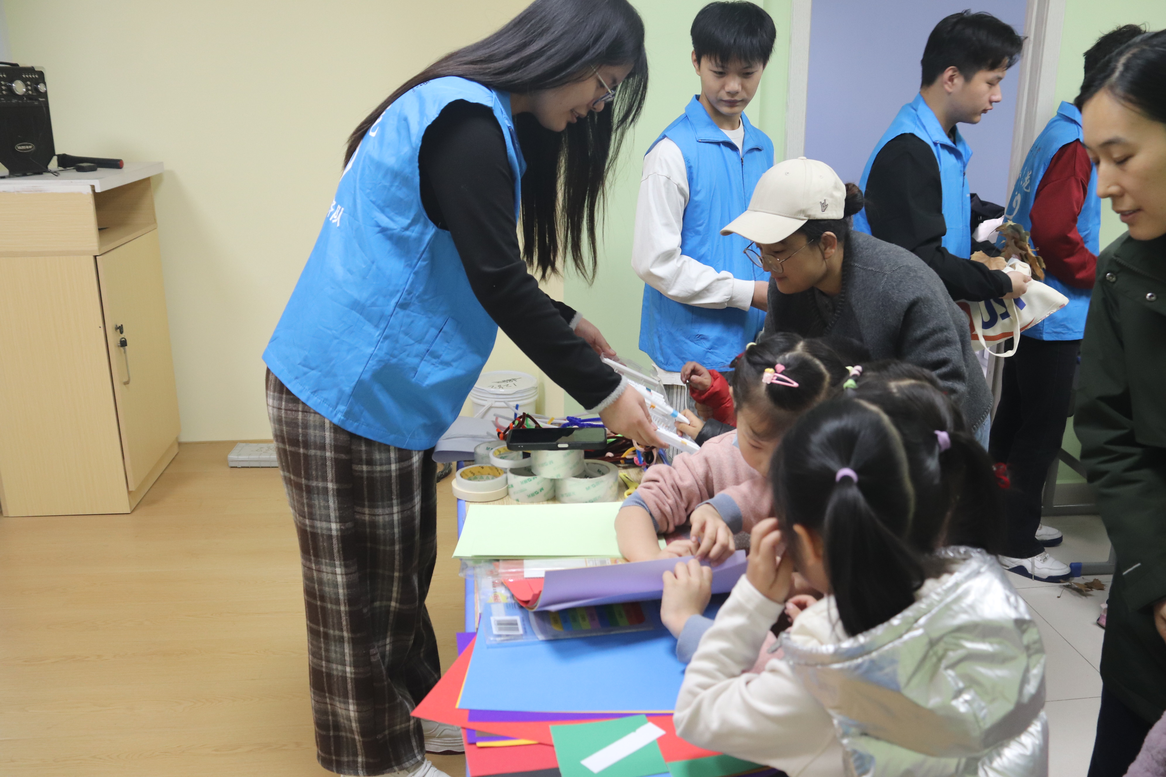 手工创作环节聚焦“废旧塑料再利用”:志愿者提前收集干净的塑料瓶、酸奶盒,指导孩子用颜料、贴纸、毛线等材料,将废旧塑料制作成笔筒、小盆栽、卡通挂饰等实用物件。志愿者还同步发放“家庭减塑任务卡”,鼓励孩子带动家长一起践行“每周少用3个塑料袋”“垃圾分类投放”等行动。