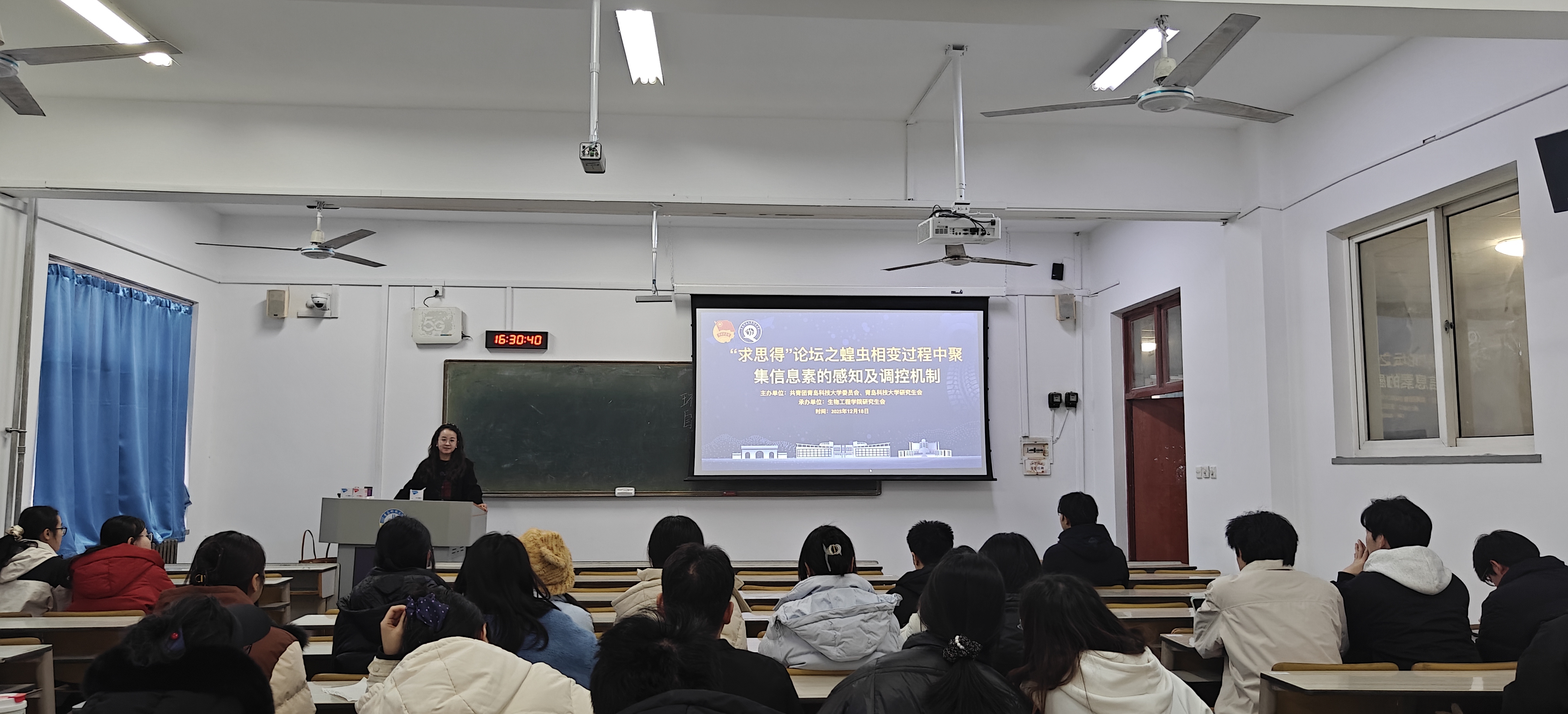 12月18日,谈球吧在一教207教室举办“求思得”论坛——蝗虫相变过程中聚集信息素的感知及调控机制。论坛邀请公司进化生物学团队杨景老师担任主讲嘉宾,围绕其作为第一作者发表于国际顶级期刊《Science Advances》的最新研究成果,系统解析飞蝗中聚集信息素感知与神经信号传导的分子机制。公司90余名研究生到场聆听并积极参与互动交流。