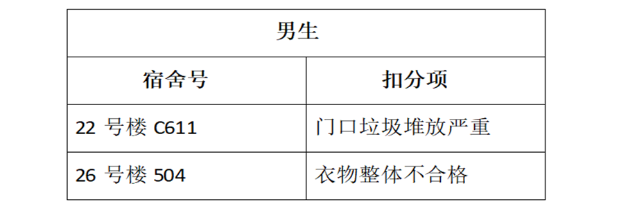 期望同学们及时整改问题:将桌面杂物分类,做好衣物收纳,地面门口垃圾当日清理,及时规范插线板使用,杜绝电器长时间待机。整洁的环境会让生活与学习更舒心,也能筑牢安全防线。只有大家主动做好日常维护,才可共同营造良好的宿舍氛围。