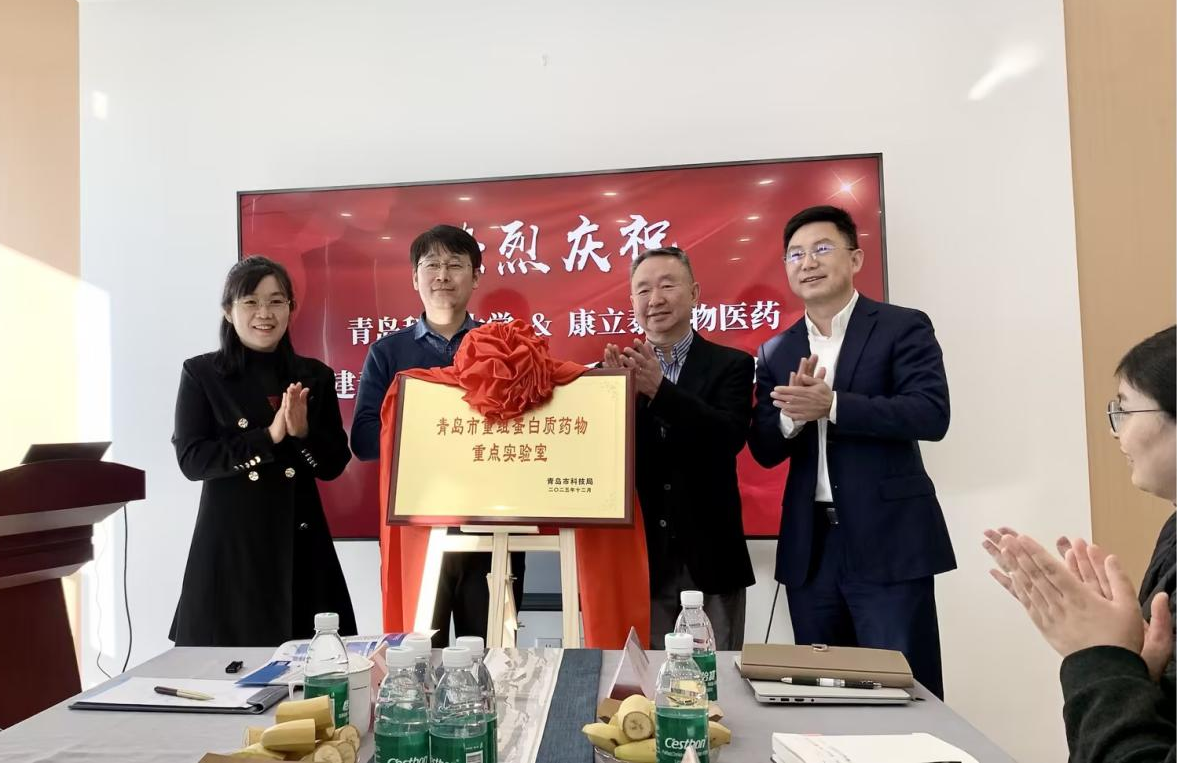 近日,谈球吧抗体工程与工程微生物研究团队与康立泰生物医药(青岛)有限公司联合申报的“青岛市重组蛋白质药物重点实验室”揭牌仪式举行。团队负责人顾玉超、康立泰执行总经理王建刚、首席战略科学家吴长有以及实验室核心成员参加了揭牌仪式并进行了深度交流。