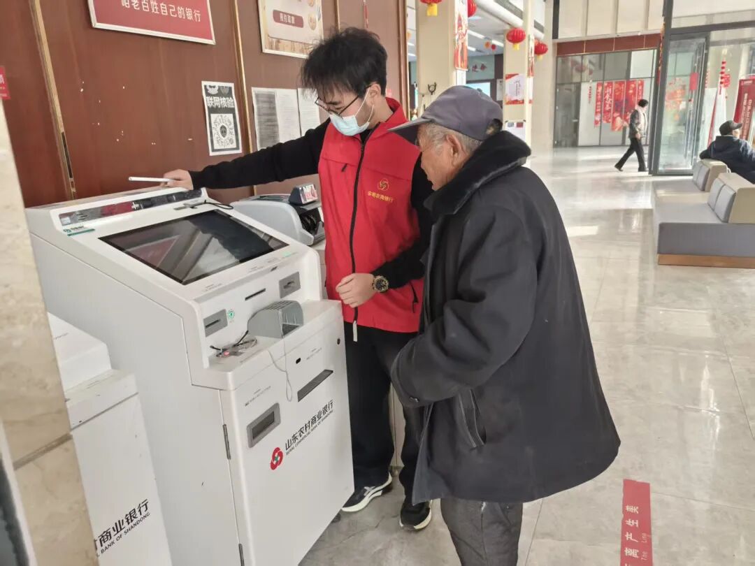 1月12日起,我于东明农商银行大屯支行参与大堂经理实习,核心负责网点大门客流引导,以及协助老年客户办理养老金支取、社保卡激活办理等基础业务,针对老年群体行动不便、不熟悉自助设备的情况,全程一对一陪同操作,帮助他们支取养老保险金。