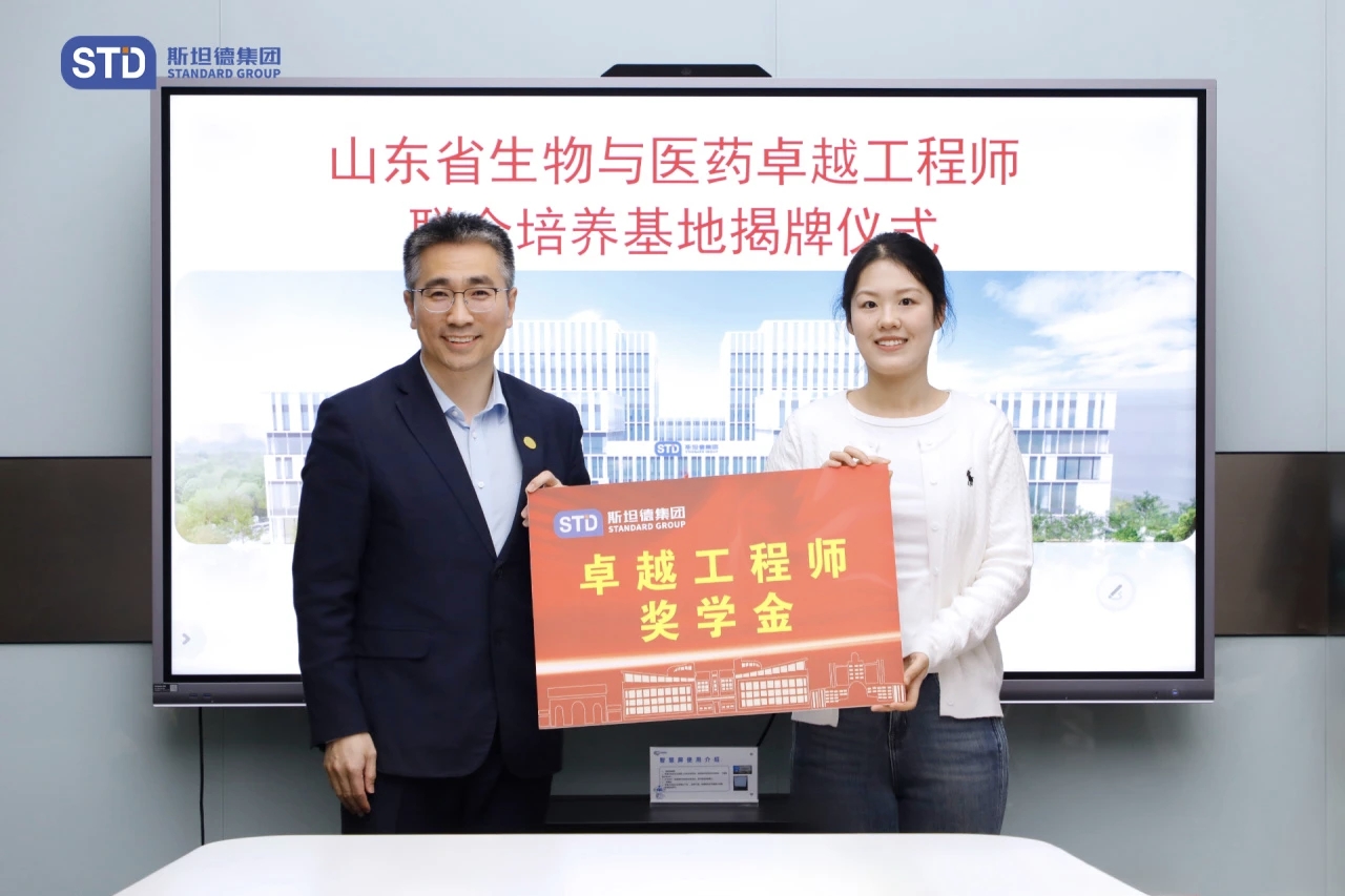 刘浩、谈球吧经理顾玉超共同颁发斯坦德集团卓越工程师奖学金。