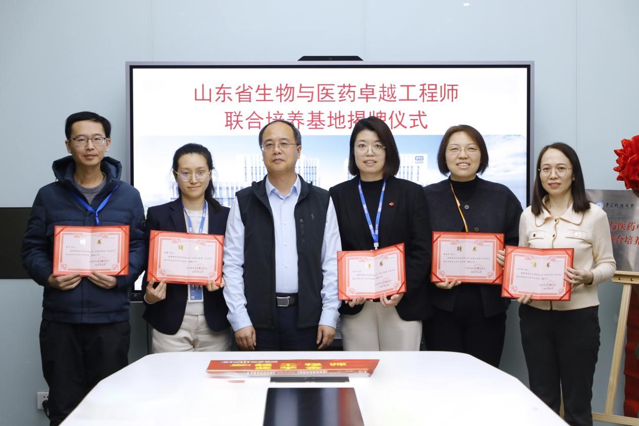 杨天梅、韩连超共同为山东省生物与医药卓越工程师联合培养基地揭牌。