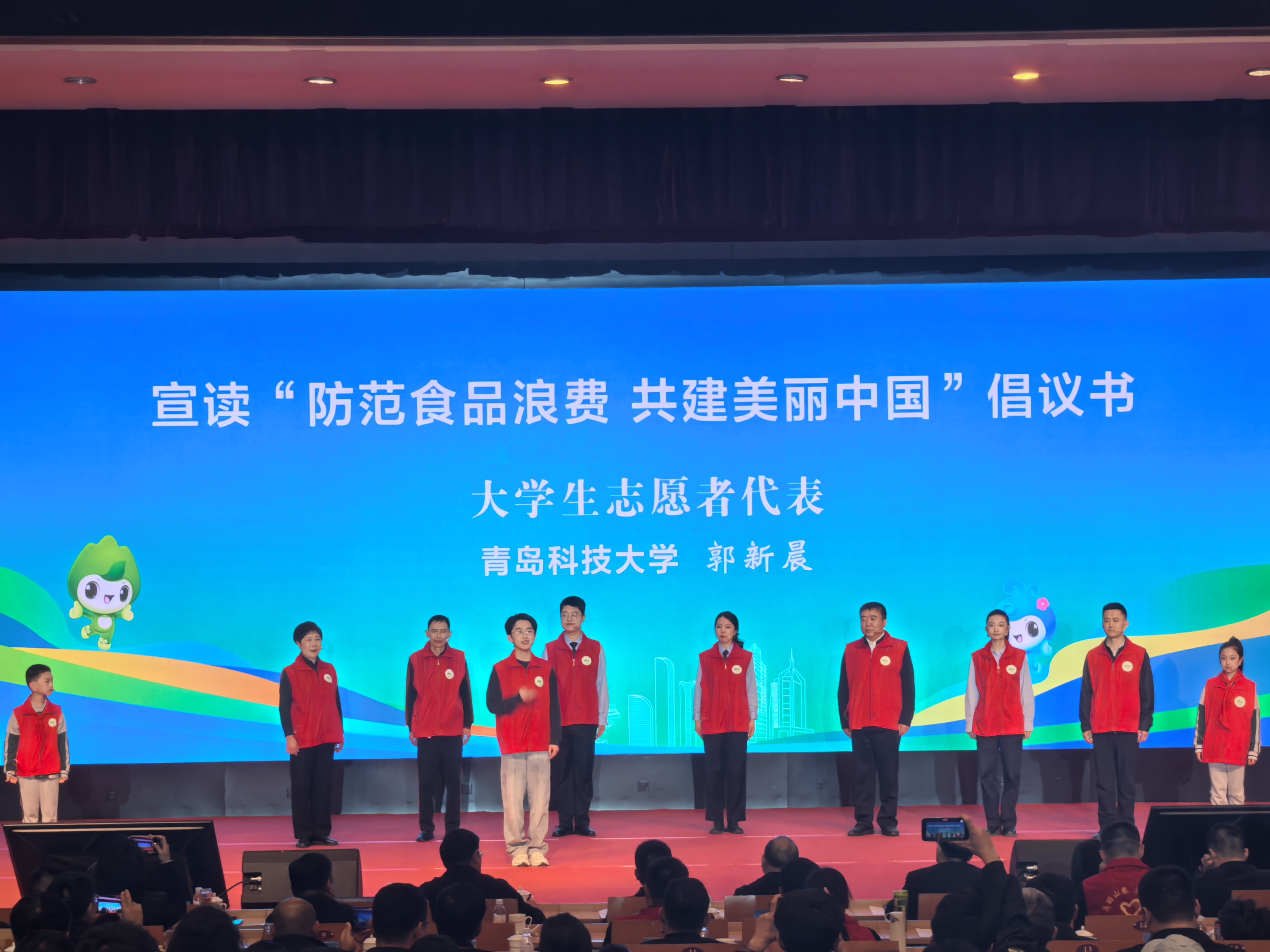 3月30日,2026年“国际无废日”山东主场活动在青岛大学举行。谈球吧海洋231班郭新晨作为老员工志愿者代表分享无废故事,并发出“防范食品浪费,共建美丽中国”倡议书。