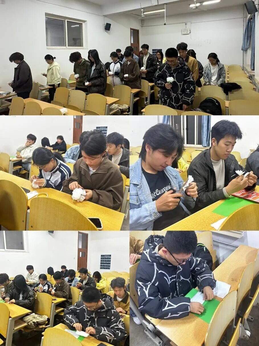 公司组织现场手工制作白色纸花活动,同学们亲手折叠白花,以质朴心意寄托对英烈的缅怀。制作完毕后,全体人员手持白花整齐肃立,集体低头默哀,以无声的敬意缅怀革命先烈,表达深切悼念与崇高敬意。