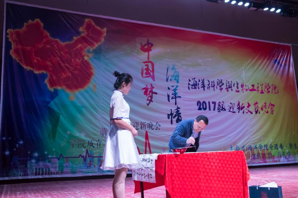 江南烟雨蒙蒙,一曲江南走秀展现了海洋公司的老师们灵动温婉的一面;搞笑却意味深长的小品《科大攻略》、雅韵华音表演的舞蹈《青花雅韵》,一人一扇一步调,带同学们感受中国古典舞蹈之美,领略中华文化,每一次律动都彰显着东方古典神韵;武术的表演,更令人在感叹中国文化渊源的同时称赞他们的技艺的确精湛,李高宁老师的一副毛笔字将中国文化博大精深表达的淋漓尽致,获得现场观众的一致好评,给观众带来了一场文化的洗礼。