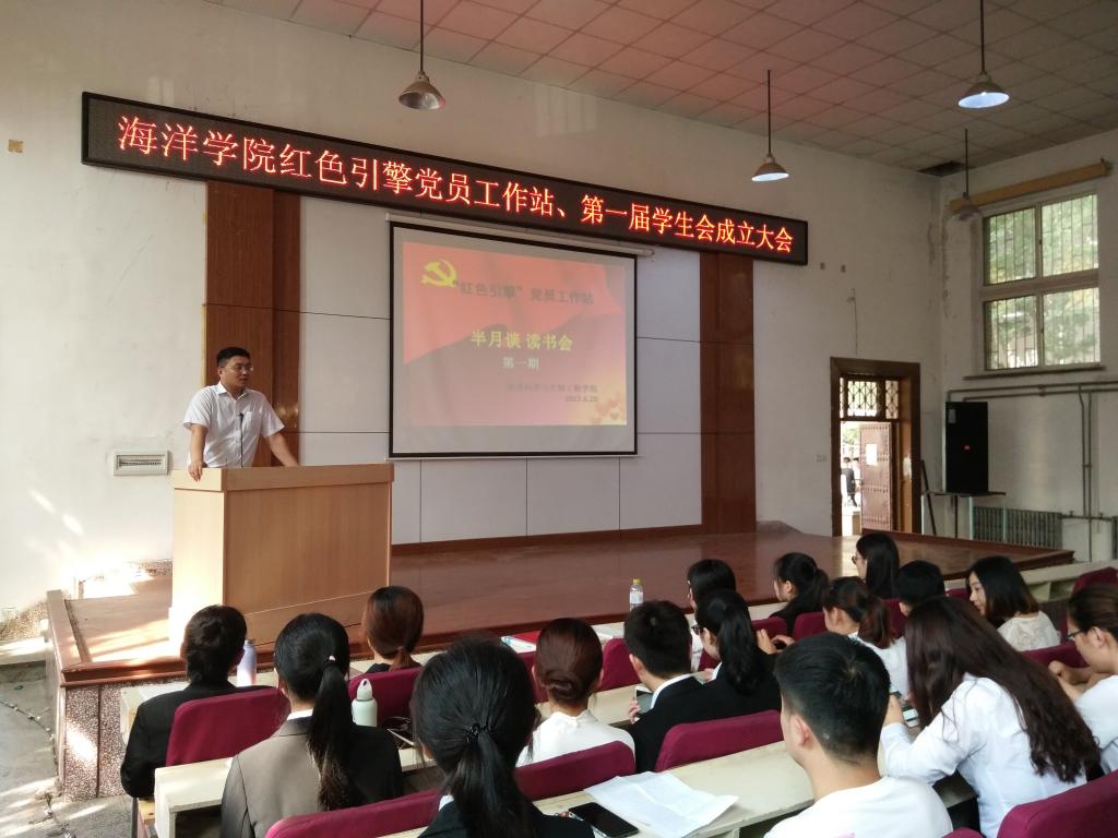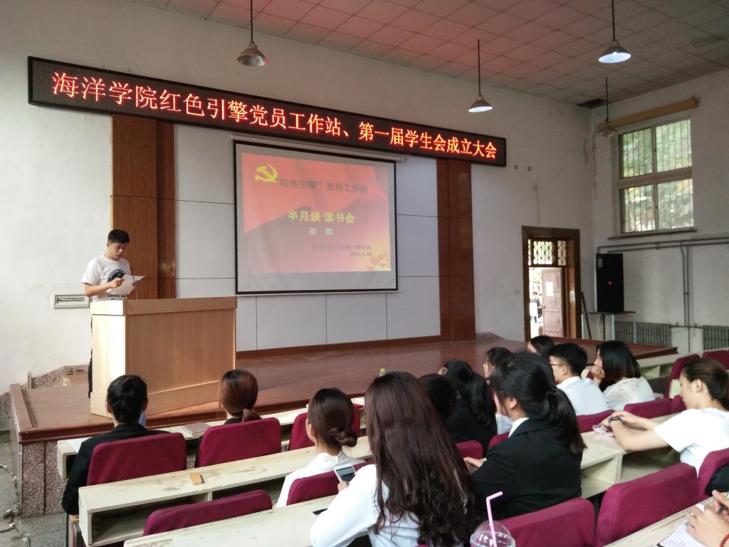 为深入贯彻落实党的十八届六中全会精神,响应习近平总书记在全国高校思想政治工作会议上的讲话,发挥员工党员先锋模范作用,6月20日下午3:00,海洋公司“红色引擎”党员工作站在讲学厅举行了第一期半月谈读书会,参加此次读书会的有负责员工工作卢中彬副书记、工作站的全体成员以及数名旁听的入党积极分子。
