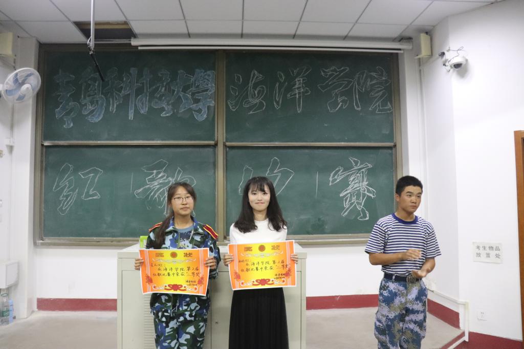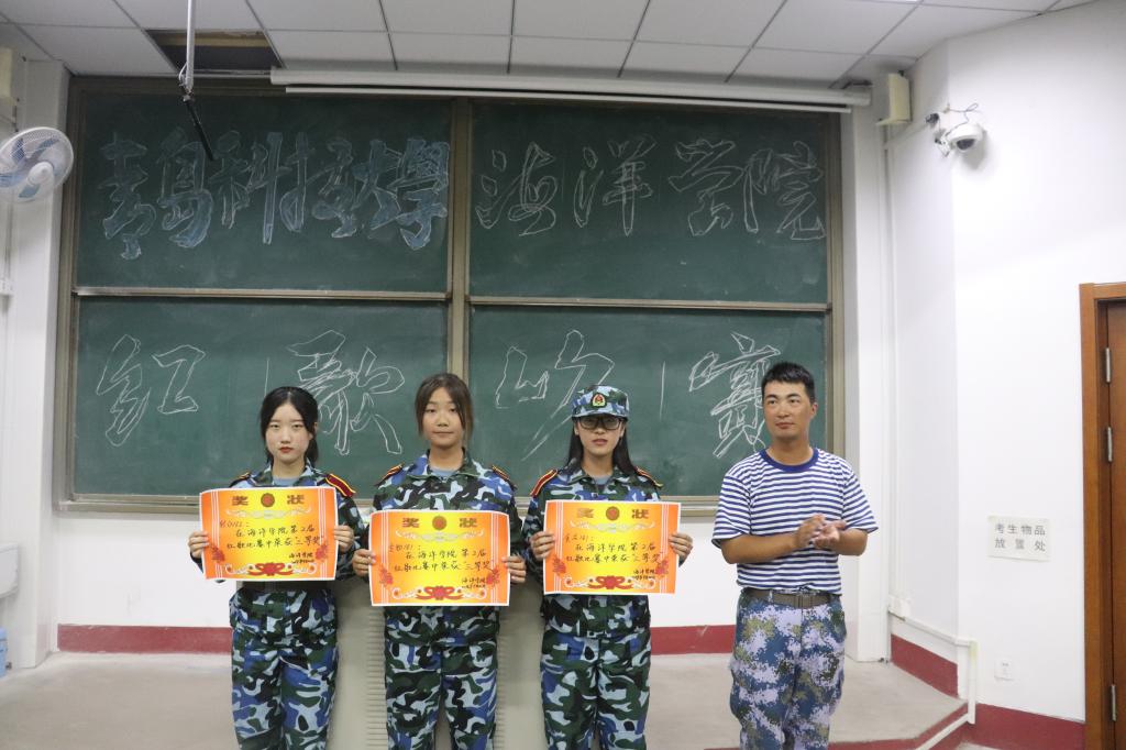 为展现当代老员工爱国爱校、朝气蓬勃、昂扬向上的精神面貌,9月20日下午6:30,海洋公司在二教317举办了“歌颂祖国”新生红歌合唱比赛。2018级新生教官、分团委老师刘金岭、“红色引擎”党员工作站站长李慧敏和员工会主席团成员出席了本次活动。