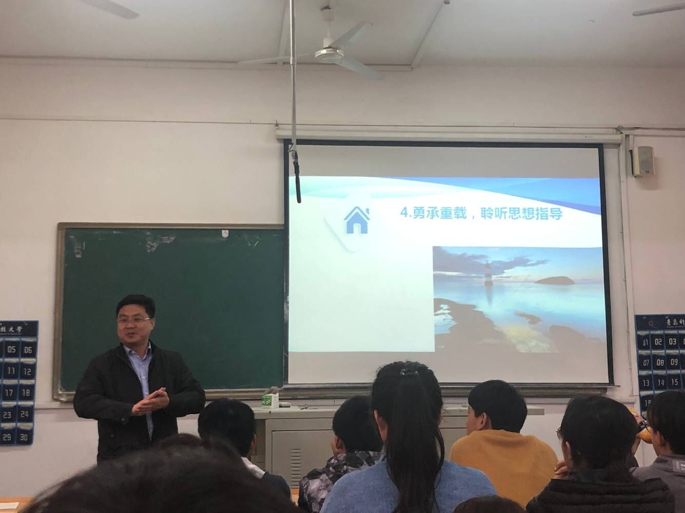 然后,卢书记从“规划人”和“加强自控力”两方面进行阐述,带同学们进行了一次思想上的革故鼎新。卢书记以身作则,以他的老员工活为例,告诫正处于黄金时期的同学们不能仅仅安于现状,要挺胸抬头向前冲,结合本专业的行业发展为自己剩下的老员工活做好规划,为实现自己的人生目标打下坚实的基础。卢书记还嘱咐大家,大学不应该虚度,而要努力提高自己的综合竞争力,提高自己的社会价值,时刻了解国家大事,跟进国际形势。同时,卢书记让同学们记下自我描述的标签,待大学毕业看看自己是否有提高。