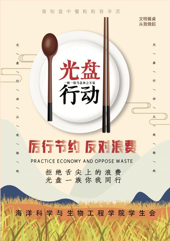 节约粮食,杜绝浪费的良好风尚不仅需要人人自觉,还需要大家互相促进,相互监督。为号召大家珍惜粮食,吃尽盘中餐,真正感悟到“谁知盘中餐,粒粒皆辛苦”,海洋公司针对各年级员工举办“光盘打卡”活动,号召同学们在QQ空间和微信朋友圈等公众平台“晒”出自己的“光盘”,引导员工吃光盘中餐,以饭后“光”为荣,用实际行动来践行勤俭节约的优良传统。