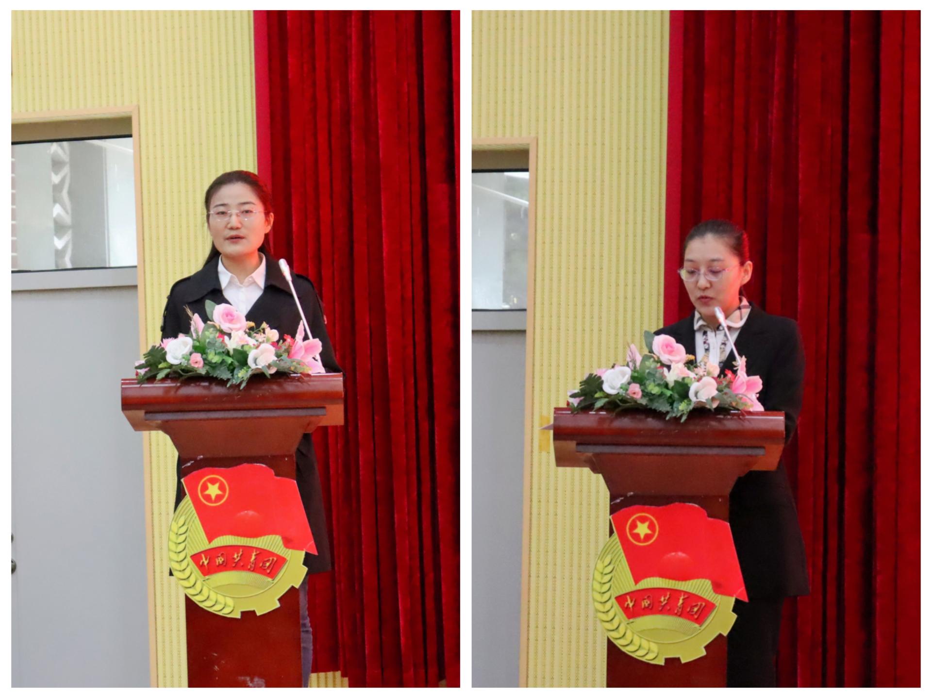 海洋科学系李银平老师和轻化工程专业182班吕姝叡同学分别作为教师代表和高年级员工代表发言。