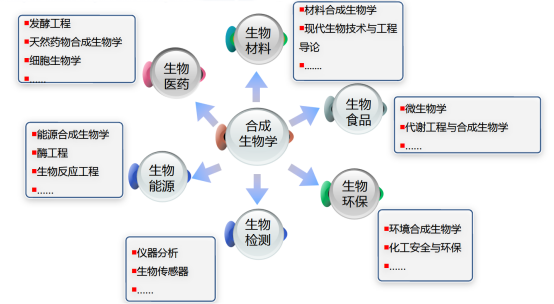 专业核心课程主要包括:合成生物学导论、基因工程、人工细胞工厂、生物信息学、合成基因组学、生物技术前沿、生物化学、微生物学、代谢工程、分子生物学、生物分离工程、能源合成生物学等。