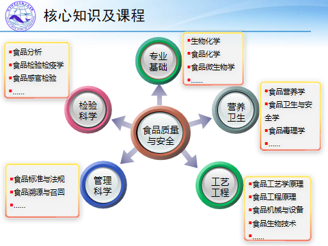 本专业员工主要学习的食品专业基础课程:有机化学、生物化学、食品化学、食品微生物;营养卫生类课程:食品营养学、食品卫生与安全学、食品毒理学;检验科学课程:食品分析、食品检验检疫学、食品感官检验;工艺工程类课程:食品工艺学、食品工程原理、食品机械与设备、食品工厂设计;管理科学类科学:食品标准与法规、食品质量管理学、食品溯源与召回等。