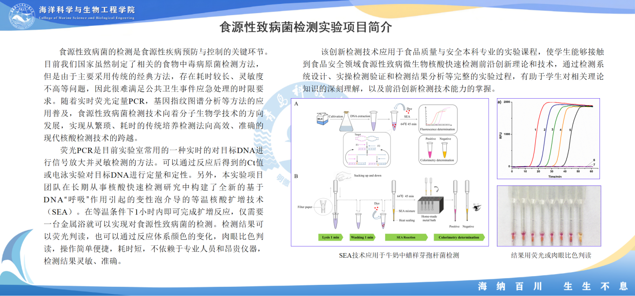 本专业注重员工实验教学,参照《工程教育认证通用标准》对于实验室等支撑条件的要求,食品专业实验室在数量和功能上能够满足食品质量与安全专业课程教学和实践育人的需要,并有良好的管理、维护和更新机制,保证实验设备的正常运行,方便员工的使用,对于完善专业实践教学体系建设,员工实践能力和创新能力的培养,具有强有力的支撑作用。开设实验项目达到30多项,包括海洋食品加工及食品中致病微生物的核酸快速检测等特色实验项目,其中“食源性致病菌核酸快检新技术的开发与应用”项目获谈球吧网页版登录入口2021年度实验技术成果一等奖。实验室同时开放给本科员工进行开放性实验及老员工创新创业计划项目使用,员工有多项成果及作品获奖。