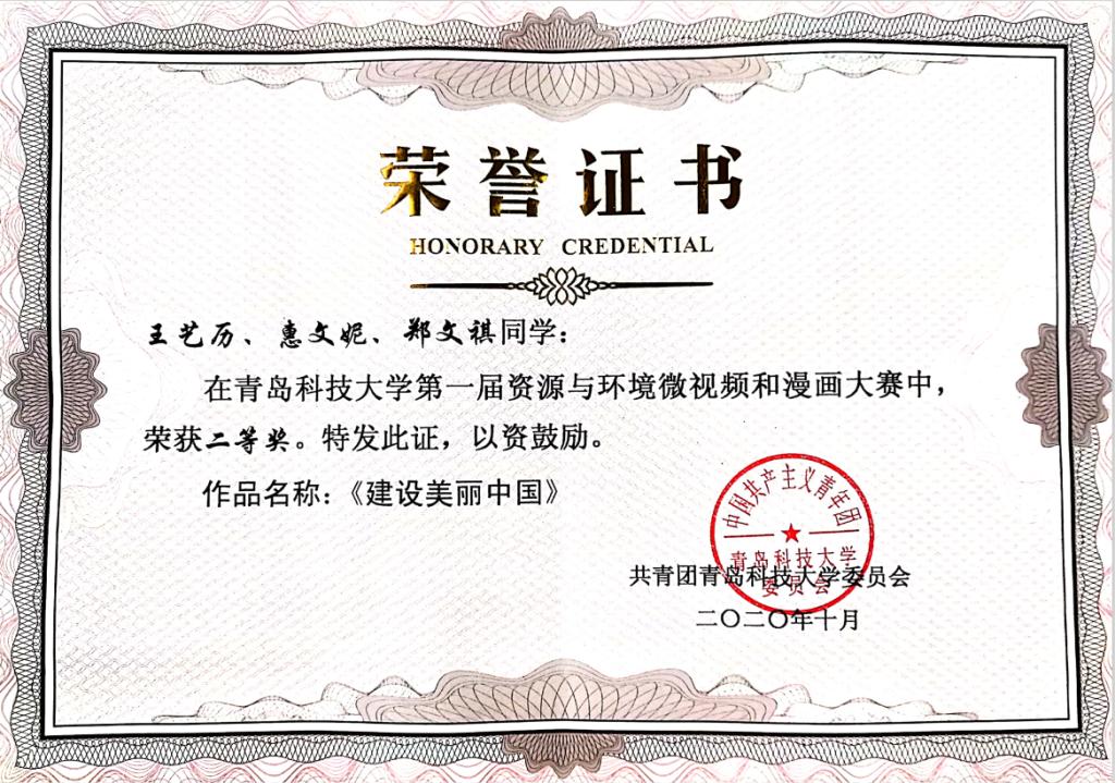 日前,由校团委、谈球吧联合举办的谈球吧网页版登录入口首届资源与环境微视频和漫画大赛获奖名单揭晓,由海洋公司王倩老师指导的微视频作品《建设美丽中国》获二等奖,团队成员由公司王艺历、惠文妮、郑文祺等五位同学组成。