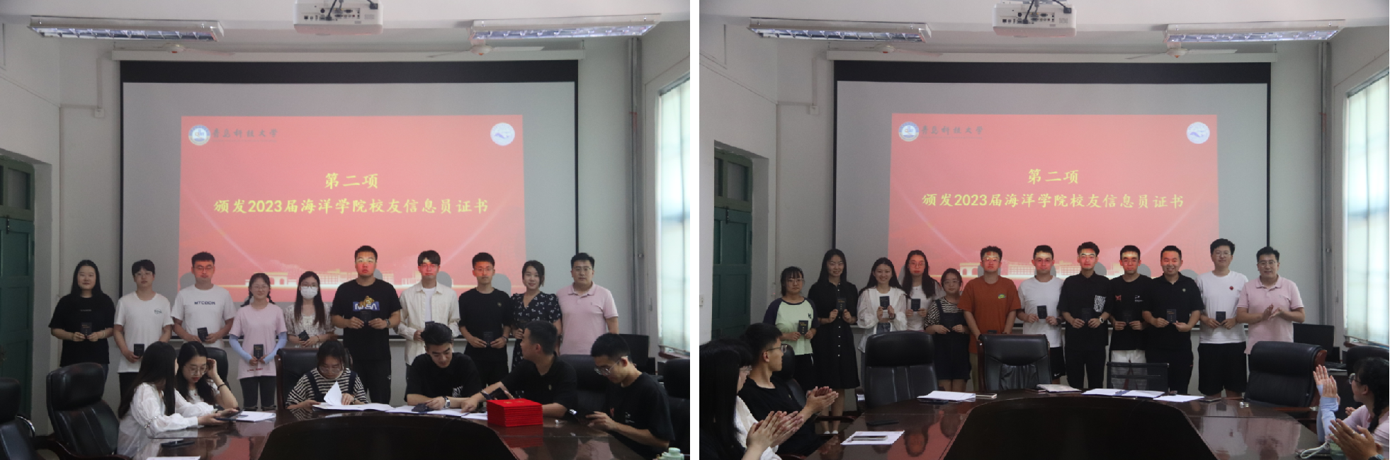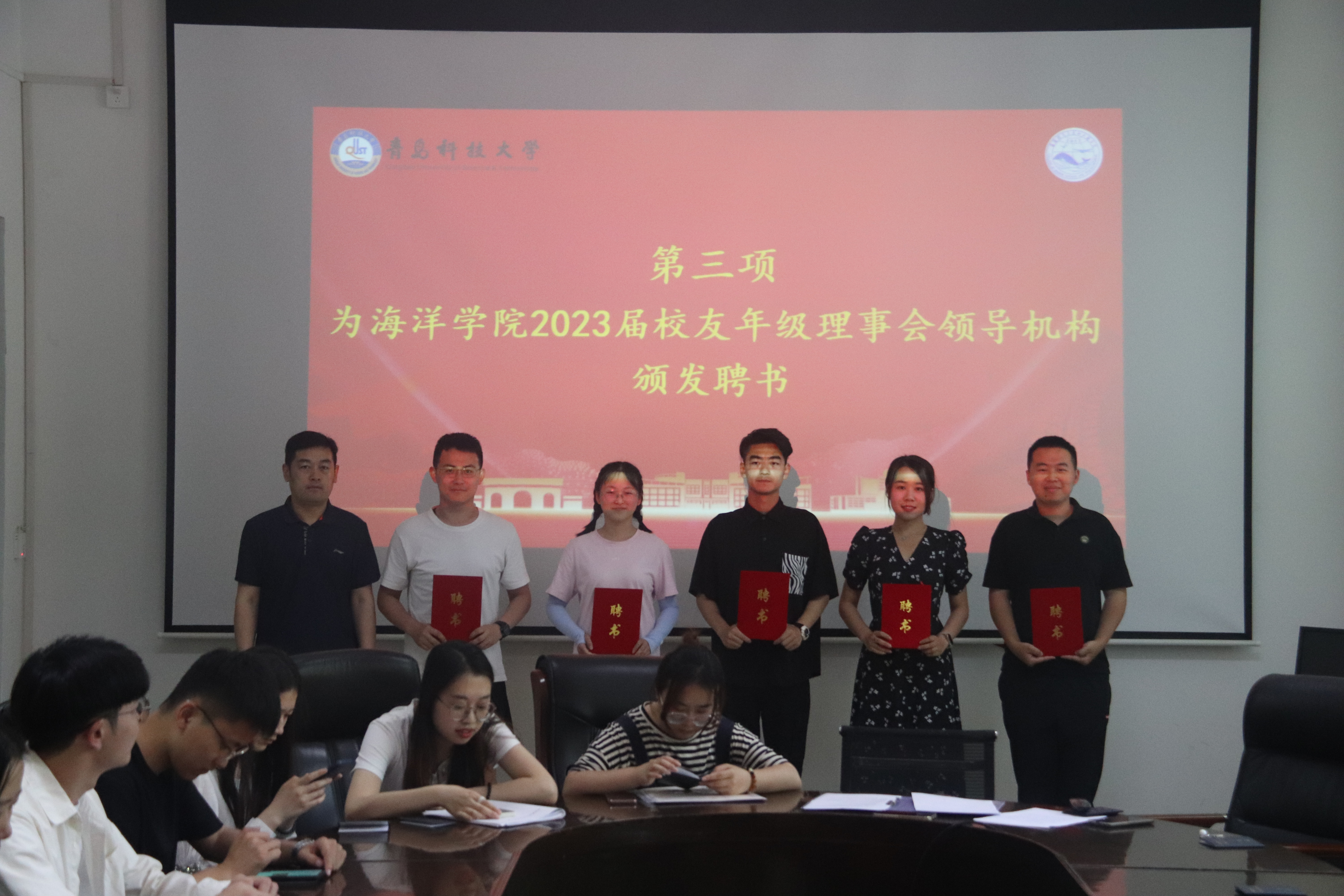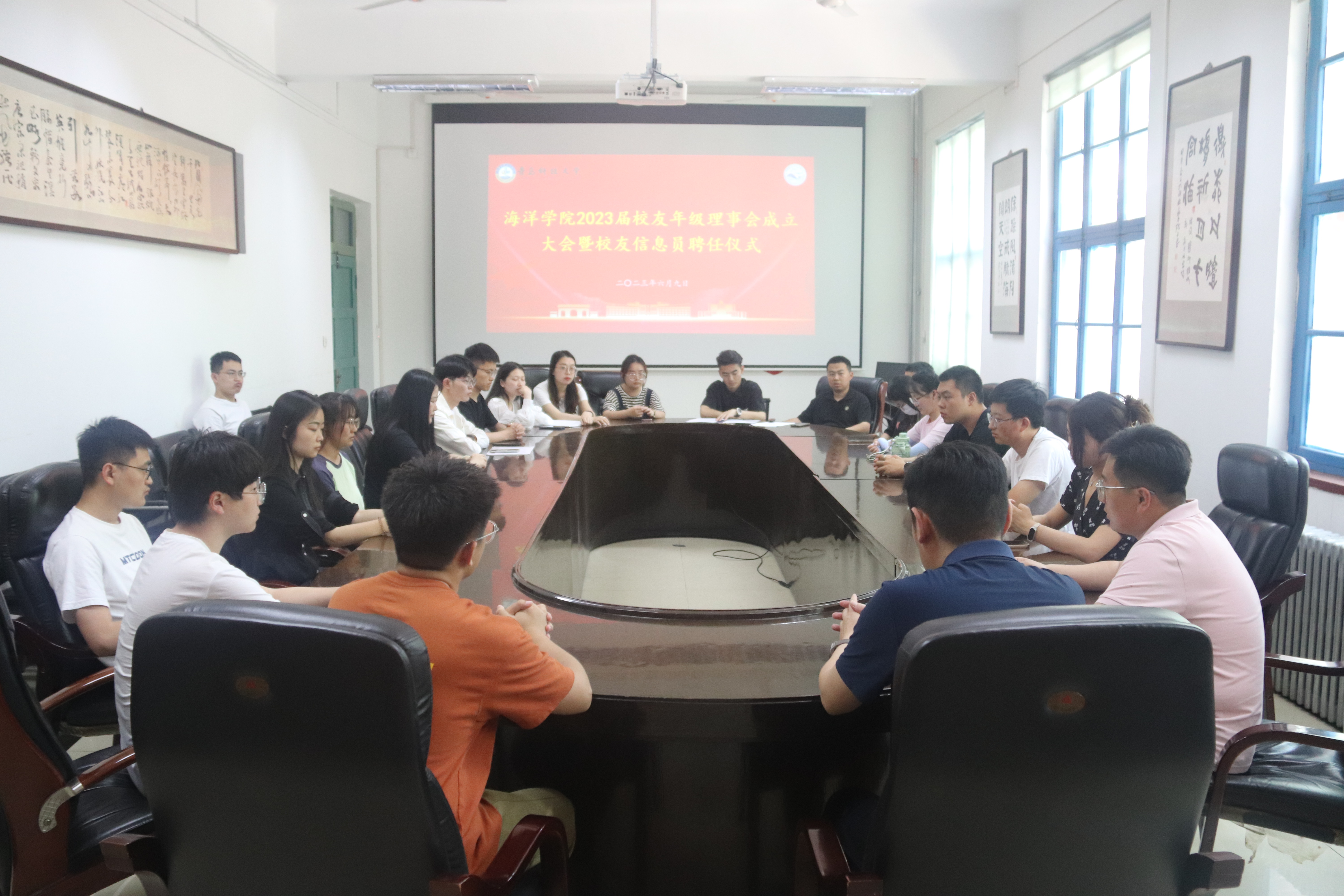 青春科大行,一生海洋情。6月9日,海洋公司2023届员工年级理事会成立大会暨员工信息员聘任仪式在海洋公司会议室举行。公司党总支副书记兼副经理、公司员工会副秘书长臧传永,学工办主任兼团委书记、2019级辅导员李浩出席会议。